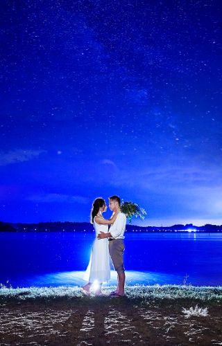 ご希望の場所、おふたりのイメージが撮影できるところへ出張撮影。満点の星空と海のイメージでの撮影をご希望されたおふたりです。ご希望の撮影のイメージをおうかがいして色々な場所や撮影手法をご提案いたします。