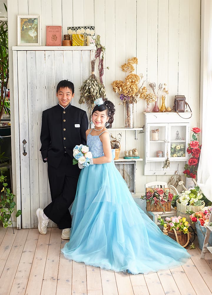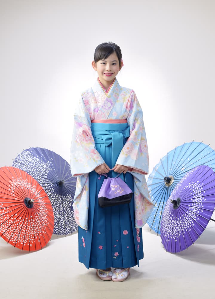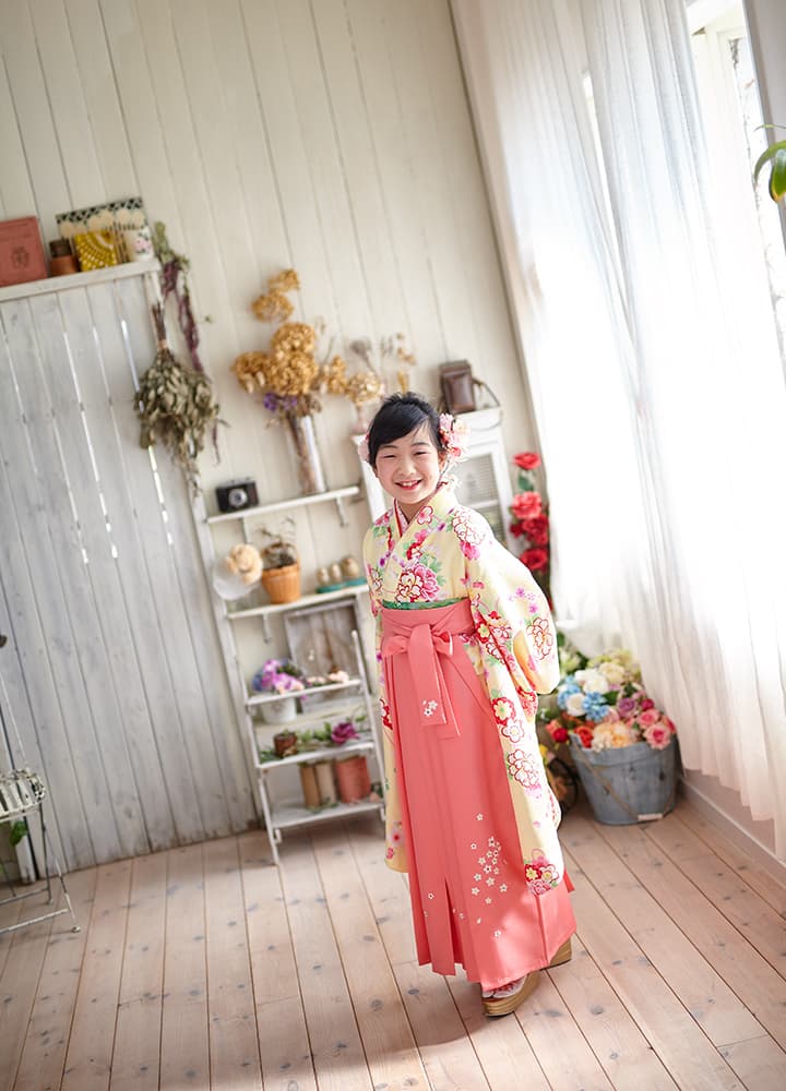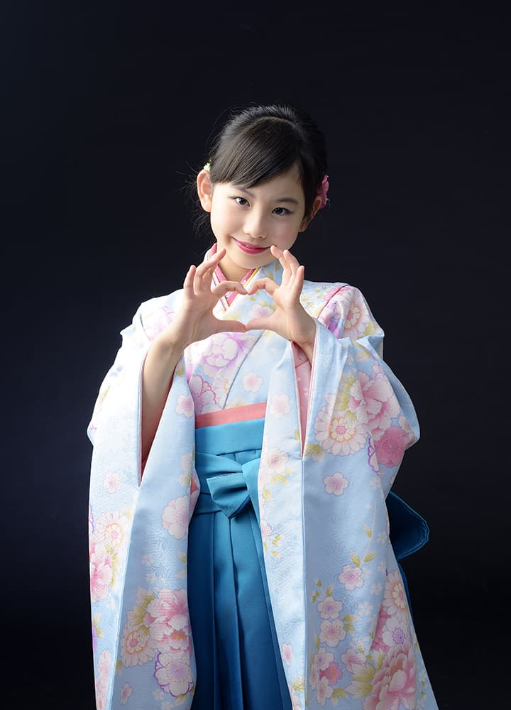 小学校四年生の秋の行事として小学校では執り行われておりますが、10歳の誕生日記念や五年生になる春休みに撮影にお越しくださる方が多くいらっしゃします。十三詣り同様、ハカマと紋付をご用意いたしております。