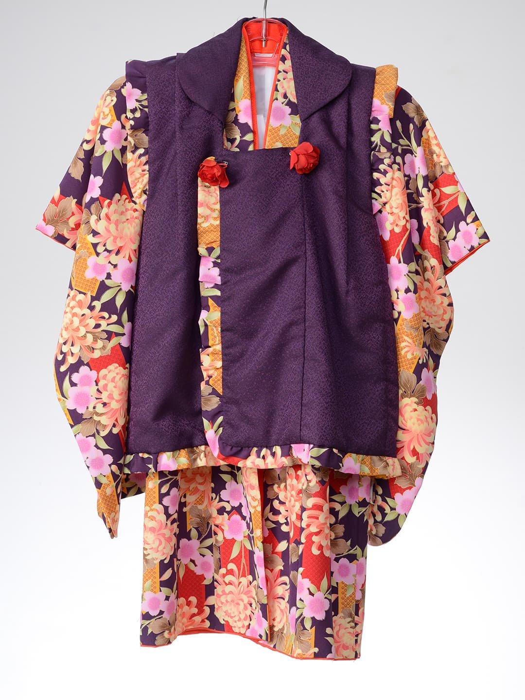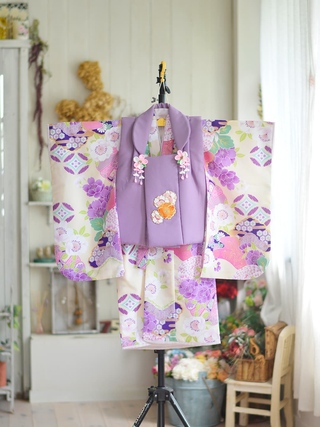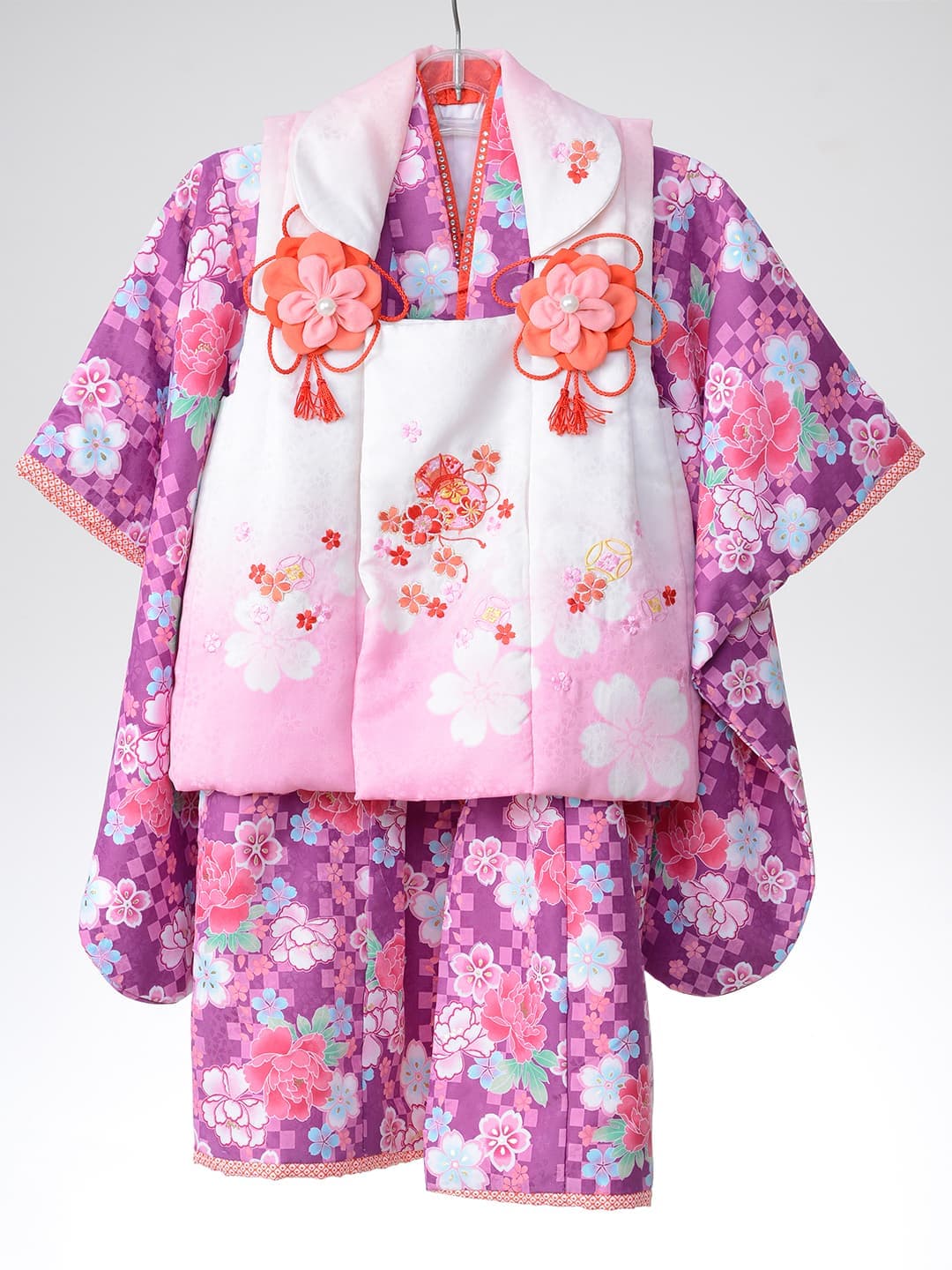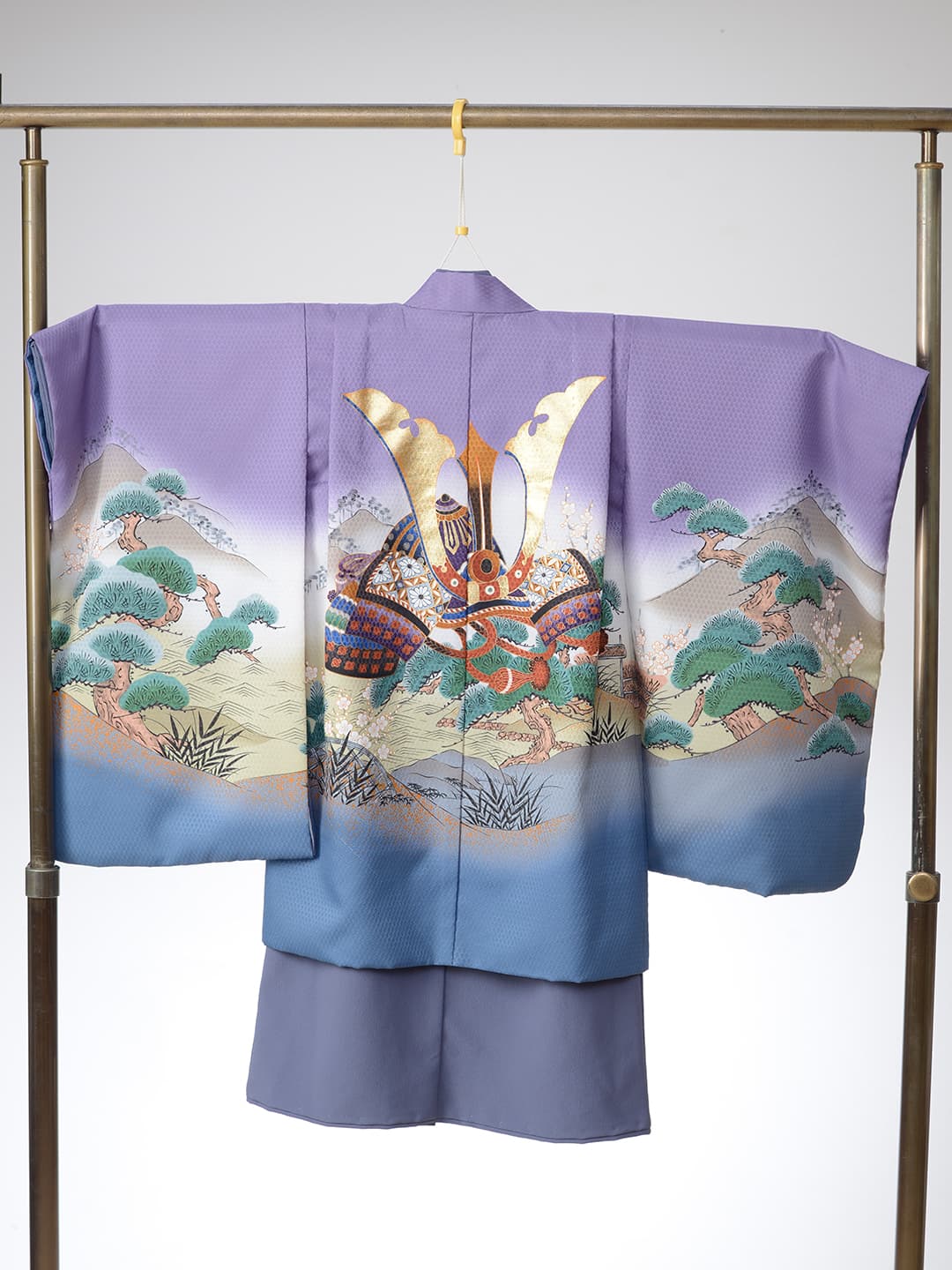 三歳 お被布 「三歳ヒフ新作」 和柄を用い伝統の美しさを継承しながらも清楚なイメージの淡いパープルでモダンに仕立てた可愛らしいお被布です。同じデザインの七歳用の晴れ着もご用意いたしておりますので姉妹ペアでお召しいただけます。また、同系色のチーフやスカーフもご用意、家族写真もトータルコーデで素敵に撮影できます。 五歳 紋付袴・甲冑 「五歳はかま新作」 鬼滅の刃で人気を博した市松模様を用い伝統の美しさを継承しながらもブルーの羽織とおしゃれなはかまでモダンに仕立てました。また同じ市松模様のチーフやスカーフもご用意、家族写真もトータルコーデで素敵に撮影できます。 七歳 晴れ着 「七歳晴れ着新作」 和柄を用い伝統の美しさを継承しながらも清楚なイメージの淡いパープルでモダンに仕立てた可愛らしいお被布です。同じデザインの三歳用の晴れ着もご用意いたしておりますので姉妹ペアでお召しいただけます。また、同系色のチーフやスカーフもご用意、家族写真もトータルコーデで素敵に撮影できます。 七歳 ドレス 「七歳ドレス新作」 三歳 ドレス 「三歳ドレス新作」