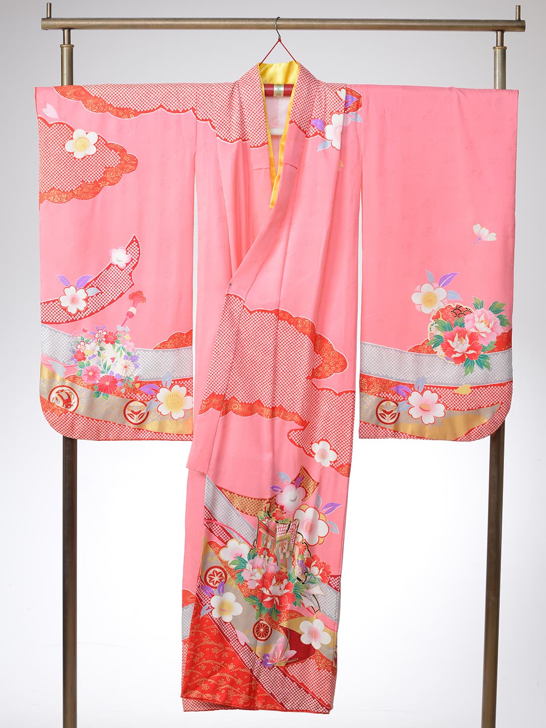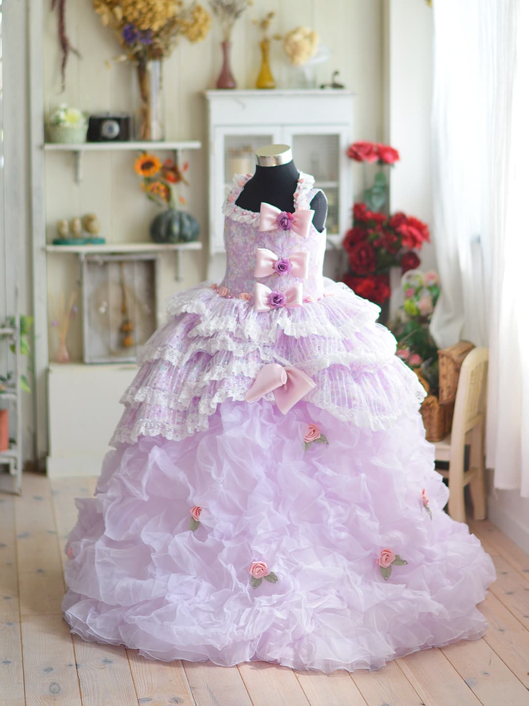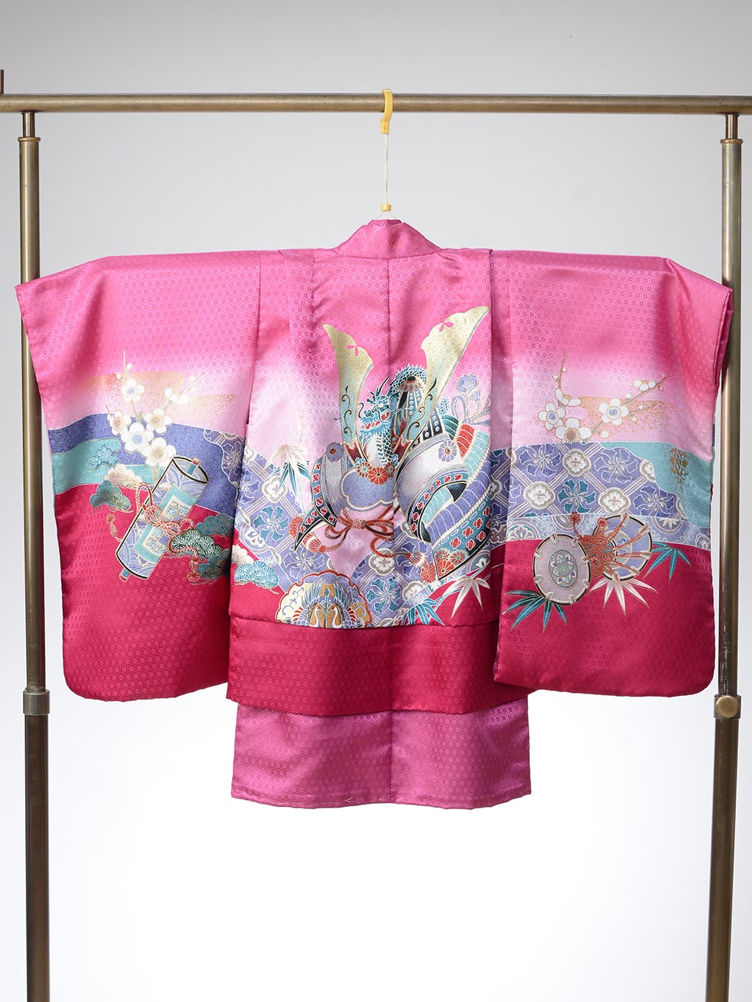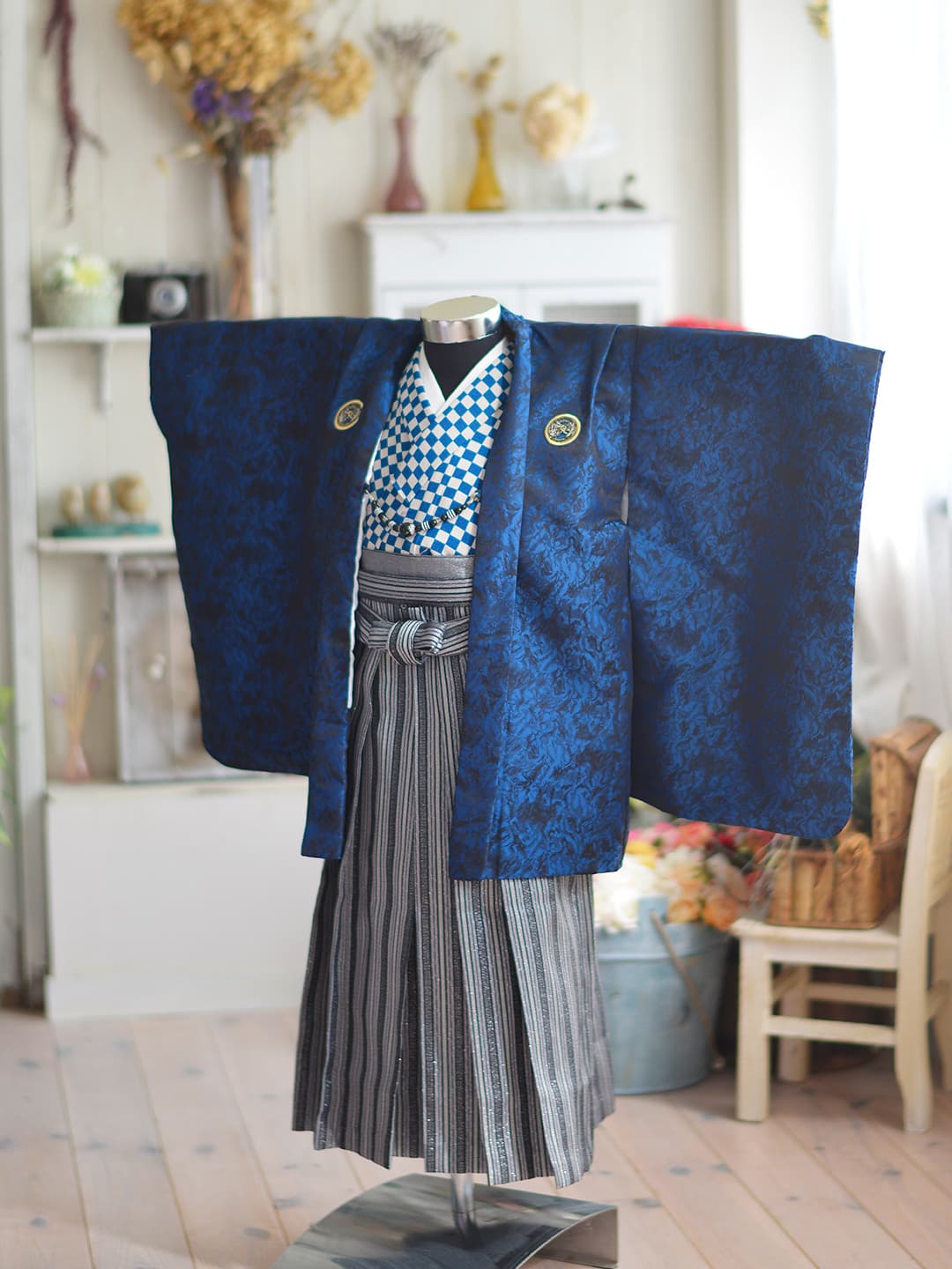 三歳 お被布 「三歳ヒフ新作」 和柄を用い伝統の美しさを継承しながらも清楚なイメージの淡いパープルでモダンに仕立てた可愛らしいお被布です。同じデザインの七歳用の晴れ着もご用意いたしておりますので姉妹ペアでお召しいただけます。また、同系色のチーフやスカーフもご用意、家族写真もトータルコーデで素敵に撮影できます。 五歳 紋付袴・甲冑 「五歳はかま新作」 鬼滅の刃で人気を博した市松模様を用い伝統の美しさを継承しながらもブルーの羽織とおしゃれなはかまでモダンに仕立てました。また同じ市松模様のチーフやスカーフもご用意、家族写真もトータルコーデで素敵に撮影できます。 七歳 晴れ着 「七歳晴れ着新作」 和柄を用い伝統の美しさを継承しながらも清楚なイメージの淡いパープルでモダンに仕立てた可愛らしいお被布です。同じデザインの三歳用の晴れ着もご用意いたしておりますので姉妹ペアでお召しいただけます。また、同系色のチーフやスカーフもご用意、家族写真もトータルコーデで素敵に撮影できます。 七歳 ドレス 「七歳ドレス新作」 三歳 ドレス 「三歳ドレス新作」