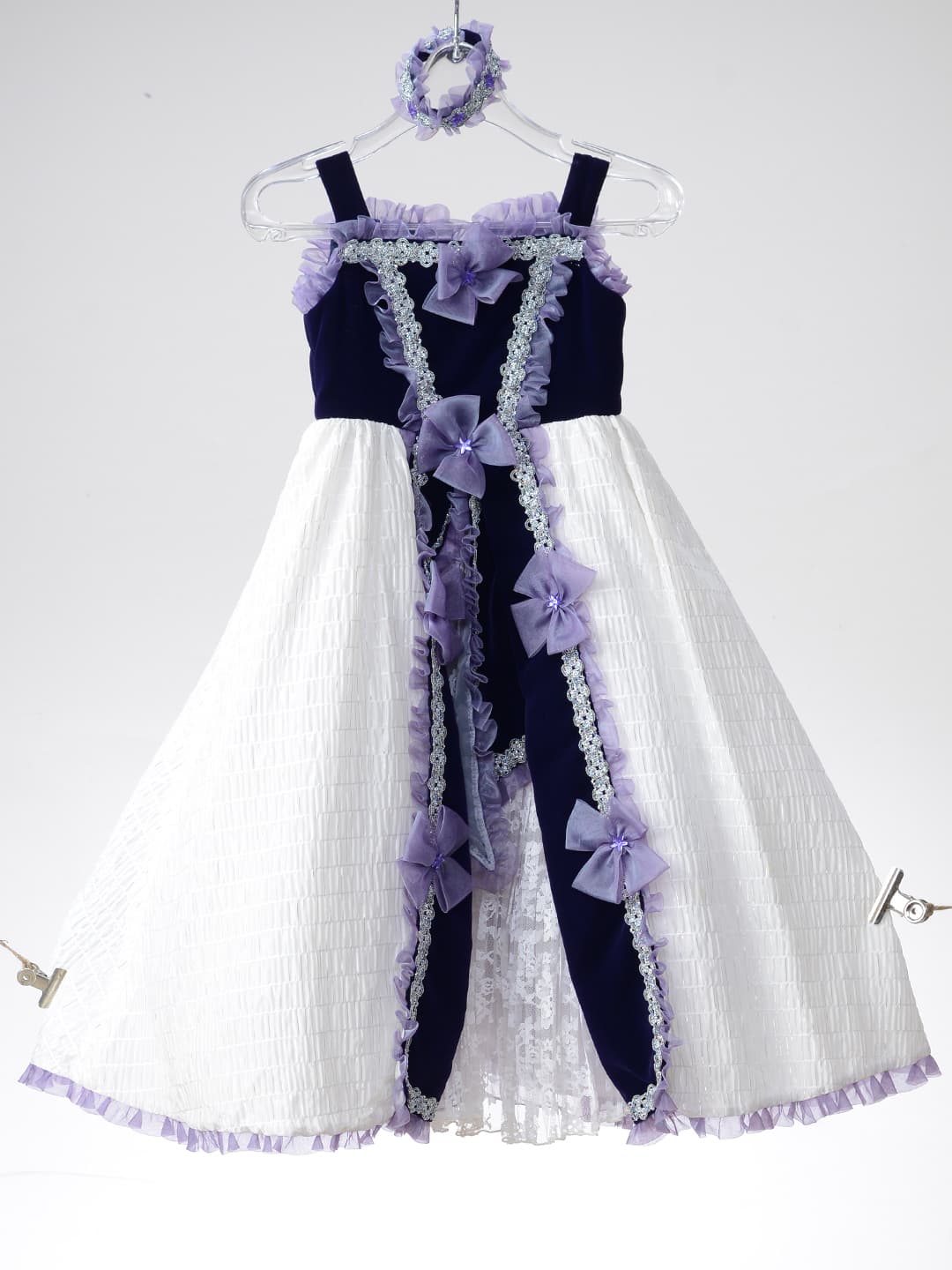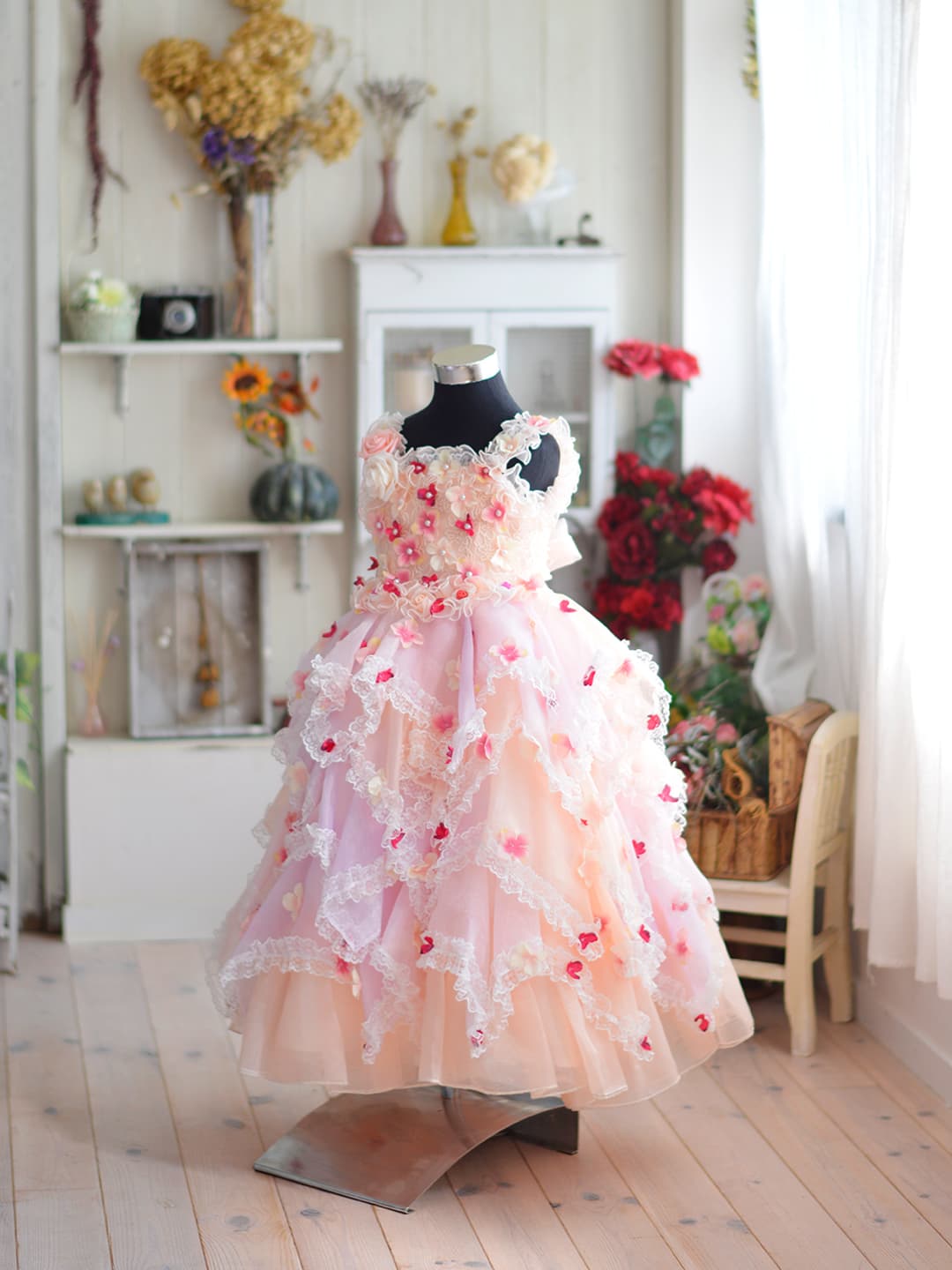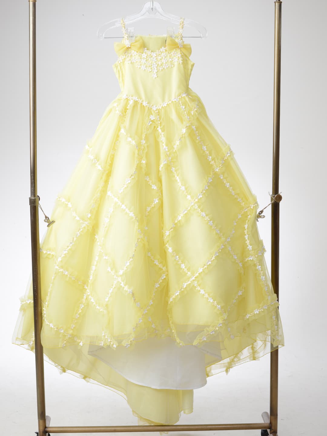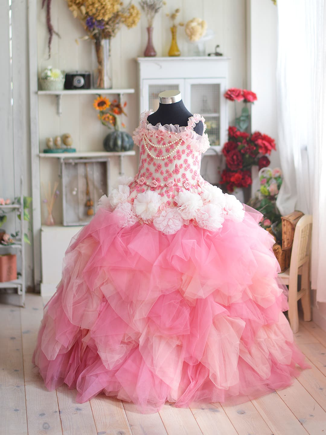 三歳 お被布 「三歳ヒフ新作」 和柄を用い伝統の美しさを継承しながらも清楚なイメージの淡いパープルでモダンに仕立てた可愛らしいお被布です。同じデザインの七歳用の晴れ着もご用意いたしておりますので姉妹ペアでお召しいただけます。また、同系色のチーフやスカーフもご用意、家族写真もトータルコーデで素敵に撮影できます。 五歳 紋付袴・甲冑 「五歳はかま新作」 鬼滅の刃で人気を博した市松模様を用い伝統の美しさを継承しながらもブルーの羽織とおしゃれなはかまでモダンに仕立てました。また同じ市松模様のチーフやスカーフもご用意、家族写真もトータルコーデで素敵に撮影できます。 七歳 晴れ着 「七歳晴れ着新作」 和柄を用い伝統の美しさを継承しながらも清楚なイメージの淡いパープルでモダンに仕立てた可愛らしいお被布です。同じデザインの三歳用の晴れ着もご用意いたしておりますので姉妹ペアでお召しいただけます。また、同系色のチーフやスカーフもご用意、家族写真もトータルコーデで素敵に撮影できます。 七歳 ドレス 「七歳ドレス新作」 三歳 ドレス 「三歳ドレス新作」